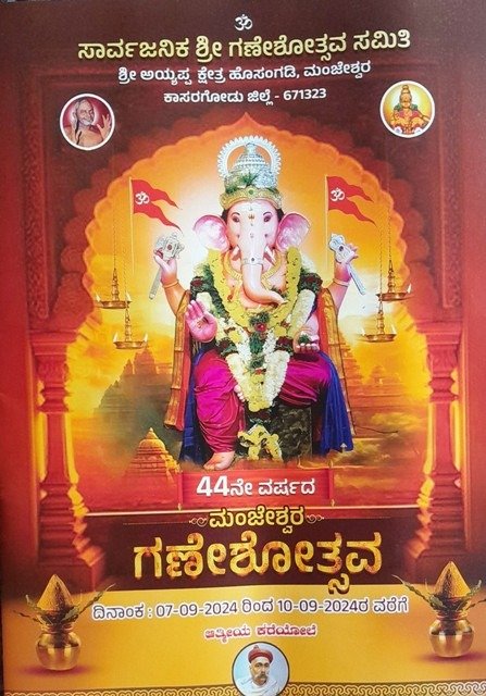 ಮಂಜೇಶ್ವರ: ಸಾರ್ವಜನಿಕ ಶ್ರೀ ಗಣೇಶೋತ್ಸವ ಸಮಿತಿ ಹೊಸಂಗಡಿ ಇದರ ಆಶ್ರಯದಲ್ಲಿ 44ನೇ ವರ್ಷದ ಮಂಜೇಶ್ವರ ಗಣೇಶೋತ್ಸವ ಸೆಪ್ಟಂಬರ್ 7ರಿಂದ 10ರ ತನಕ ಹೊಸಂಗಡಿ ಶ್ರೀ ಅಯ್ಯಪ್ಪ ಕ್ಷೇತ್ರದಲ್ಲಿ ವಿವಿಧ ಕಾರ್ಯಕ್ರಮಗಳೊಂದಿಗೆ ನಡೆಯಲಿದೆ. 7ರಂದು ಬೆಳಿಗ್ಗೆ 7.30ಕ್ಕೆ ಸಮೂಹಿಕ ಪ್ರಾರ್ಥನೆ, 8ಕ್ಕೆ ಗಣಹೋಮ, ಗೌರೀಪೂಜೆ, 9ಕ್ಕೆ ಶ್ರೀ ಗಣಪತಿ ದೇÃವರ ಪ್ರತಿಷ್ಟೆ, 9.15ಕ್ಕೆ ವೈದ್ಯಾಧಿಕಾರಿ ಡಾ.ಪ್ರಭಾಕರ.ಎಂ ರವರಿಂದ ದೀಪಪ್ರಜ್ವಲನೆ, 9.30ಕ್ಕೆ ದ್ವಜಾರೋಹಣ, 10ಕ್ಕೆ ಸ್ಯಾಕ್ಸೋಪೋನ್ ವಾದನ, 10.30ಕ್ಕೆ ವಿವಿಧ ಆಟೋಟ ಸ್ಪರ್ಧೆಗಳು ಆರಂಭ, 11ಗಂಟೆಗೆ ಯಕ್ಷಗಾನ ತಾಳಮದ್ದಳೆ, ಮಧ್ಯಾಹ್ನ 12.30ಕ್ಕೆ ಮಹಾಪೂಜೆ, ಪ್ರಸಾದ ವಿತರಣೆ, ಅನ್ನಸಂತರ್ಪಣೆ, 2ರಿಂದ ಸಂಜೆ 5ರ ತನಕ ವಿವಿಧ ಸ್ಪರ್ಧೆಗಳು, ಸಂಜೆ 6ಕ್ಕೆ ಕುಣಿತ ಭಜನೆ, ರಾತ್ರಿ 7ರಿಂದ ಸ್ಥಳೀಯ ಮಕ್ಕಳಿಂದ ನೃತ್ಯ ವೈಭವ, 7.30ಕ್ಕೆ ನಡೇಯುವ ಮಾತೃಸಂಗಮದಲ್ಲಿ ಒಡಿಯೂರು ಶ್ರೀ ಗುರುದೇವದತ್ತ ಸಂಸ್ಥಾನದ ಸಾದ್ವಿ ಮಾತಾನಂದಮಯಿ ಆಶೀರ್ವಚನ ನೀಡುವರು. ಹೊಸಂಗಡಿ ಶ್ರೀ ಅಯ್ಯಪ್ಪ ಸೇವಾ ಮಾತೃ ಸಮಿತಿ ಅಧ್ಯಕ್ಷೆ ರಜನಿ ಶ್ರೀಧರ್ ಮಜಾಲ್ ಅಧ್ಯಕ್ಷತೆ ವಹಿಸುವರು. ನ್ಯಾಯವಾದಿ ಸಹನಾ ಕುಂದರ್ ಸೂಡಾ ಉಡುಪಿ ಧಾರ್ಮಿಕ ಉಪನ್ಯಾಸ ನೀಡುವರು. ವಿವಿಧ ಗಣ್ಯರು ಉಪಸ್ಥಿತರಿರುವರು. ರಾತ್ರಿ 9ಕ್ಕೆ ಮಹಾಪೂಜೆ, ಪ್ರಸಾದ ವಿತರಣೆ, 8ರಂದು ಬೆಳಿಗ್ಗೆ7.30ಕ್ಕೆ ಪೂಜೆ, 8ಕ್ಕೆ ಗಣಹೋಮ, ಭಜನೆ, 11.30ಕ್ಕೆ ಶಾಸ್ತಿçÃಯ ಸಂಗೀತ, ಮಧ್ಯಾಹ್ನ 12.30ಕ್ಕೆ ಮಹಾಪೂಜೆ, ಪ್ರಸಾದ ವಿತರಣೆ, ಅನ್ನಸಂತರ್ಪಣೆ, ಮಧ್ಯಾಹ್ನ 1.30ಕ್ಕೆ ಚಿಂತನ ಮಂಥನ, ಸಂಜೆ 4ಕ್ಕೆ ಭಜನೆ, 5ಕ್ಕೆ ಕುಣಿತ ಭಜನೆ, 7ರಿಂದ ನಾಟ್ಯವೈಭವ, ರಾತ್ರಿ 8ಕ್ಕೆ ರಂಗಪೂಜೆ, ಪ್ರಸಾದ ವಿತರಣೆ, 9ರಂದು ಬೆಳಿಗ್ಗೆ 7ಕ್ಕೆ ಪೂಜೆ, 9ಕ್ಕೆ 108 ಕಾಯಿಗಳ ಮಹಾಗಣಯಾಗ, 10.30ಕ್ಕೆ ಸ್ಯಾಕ್ಸೋಫೋನ್ ವಾದನ, ಮಧ್ಯಾಹ್ನ 12ಕ್ಕೆ ಯಾಗ ಪೂರ್ಣಾಹುತಿ, ಮಹಾಪೂಜೆ, ಪ್ರಸಾದ ವಿತರಣೆ, ಅನ್ನಸಂತರ್ಪಣೆ, ಅಪರಾಹ್ನ 3ರಿಂದ 6ರ ತನಕ ಭಜನೆ, 7ರಿಂದ ನಡೆಯುವ ಧಾರ್ಮಿಕ ಸಭೆಯಲ್ಲಿ ಒಡಿಯೂರು ಶ್ರೀ ಗುರುದೇವಾನಂದ ಸ್ವಾಮೀಜಿ ಆಶೀರ್ವಚನ ನೀಡುವರು. ಗಣೇಶೋತ್ಸವ ಸಮಿತಿ ಅಧ್ಯಕ್ಷ ನ್ಯಾಯವಾದಿ ನವೀನ್ರಾಜ್ ಕೆ.ಜೆ ಅಧ್ಯಕ್ಷತೆ ವಹಿಸುವರು. ಧಾರ್ಮಿಕ ಪ್ರವಚನಕಾರರಾದ ವೇದಮೂರ್ತಿ ಶ್ರೀ ಕೇಶವ ಭಟ್ ಕೇಕಣಾಜೆ ಧಾರ್ಮಿಕ ಭಾಷಣ ಮಾಡುವರು. ವೇದಿಕೆಯಲ್ಲಿ ವಿವಿಧ ವಲಯಗಳ ಗಣ್ಯರು ಉಪಸ್ಥಿತರಿರುವರು. ಈ ಸಂದರ್ಭದಲ್ಲಿ ಶ್ರೀ ಗಣೇಶೋತ್ಸವ ಸಮಿತಿಯ ಹಿರಿಯ ಕಾರ್ಯಕರ್ತರಾದ ಶೇಷಪ್ಪ ಸಾಲಿಯಾನ್ ಮತ್ತು ಬಾಲಕೃಷ್ಣ.ಕೆ ಕಣ್ವತೀರ್ಥ ಬೆಂಗ್ರೆ ಇವರನ್ನು ಗೌರವಿಸಲಾಗುವುದು. ರಾತ್ರಿ 9ಕ್ಕೆ ಮಹಾಪೂಜೆ, ಪ್ರಸಾದ ವಿತರಣೆ, 9.30ರಿಂದ ಲಕುಮಿ ತಂಡದ ಕುಸಲ್ದ ಕಲಾವಿದೆರ್ ಅಭಿನಯಿಸುವ ಒರಿಯಾಂಡಲಾ ಸರಿಬೋಡು ನಾಟಕ ಪ್ರದರ್ಶನಗೊಳ್ಳಲಿದೆ. 10ರಂದು 7ಕ್ಕೆ ಪೂಜೆ, 8ಕ್ಕೆ ಗಣಹೋಮ, 9ಕ್ಕೆ ಭಜನೆ, 11ಕ್ಕೆ ಭಕ್ತಿಗಾನ ಚಿಂಚನ, ಮಧ್ಯಾಹ್ನ 12ಕ್ಕೆ ಮಹಾಪೂಜೆ, ಪ್ರಸಾದ ವಿತರಣೆ, ಅನ್ನಸಂತರ್ಪಣೆ, 2.30ಕ್ಕೆ ದ್ವಜಾವತರಣ, ಶ್ರೀ ಗಣಪತಿ ದೇವರ ಶೋಭಾಯಾತ್ರೆ ಹೊರಡುವುದು, 3ಕ್ಕೆ ಹೊಸಂಗಡಿ ಜಂಕ್ಷನ್ನಲ್ಲಿ ಸುಡುಮದ್ದು ಪ್ರದರ್ಶನ, ರಾತ್ರಿ 8ಕ್ಕೆ ಕಣ್ವತೀರ್ಥ ಶ್ರೀರಾಮ ಸಮುದ್ರದಲ್ಲಿ ವಿಗ್ರಹದ ಜಲಸ್ತಂಭನ ನಡೆಯಲಿದೆ.