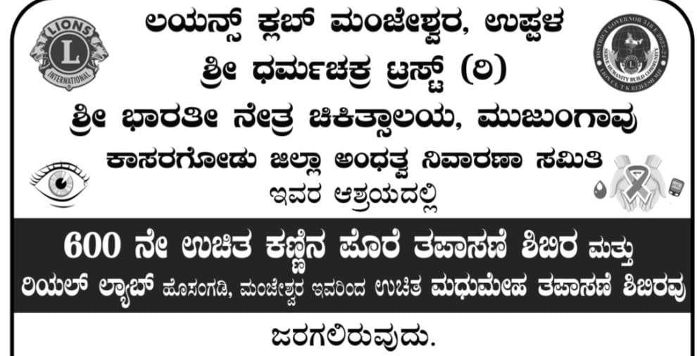 ಉಪ್ಪಳ: ಲಯನ್ಸ್ ಕ್ಲಬ್ ಮಂಜೇಶ್ವರ, ಉಪ್ಪಳ, ಶ್ರೀ ಧರ್ಮಚಕ್ರ ಟ್ರಸ್ಟ್, ಶ್ರೀ ಭಾರತೀ ನೇತ್ರ ಚಿಕಿತ್ಸಾಲಯ ಮುಜಂಗಾವು, ಕಾಸರಗೋಡು ಜಿಲ್ಲಾ ಅಂಧತ್ವ ನಿವಾರಣಾ ಸಮಿತಿ ಇವರ ಜಂಟಿ ಆಶ್ರಯದಲ್ಲಿ ೬೦೦ನೇ ಉಚಿತ ಕಣ್ಣಿನ ಪೊರೆ ತಪಾಸಣೆ ಶಿಬಿರ ಹಾಗೂ ರಿಯಲ್ ಲ್ಯಾಬ್ ಹೊಸಂಗಡಿ ಇವರಿಂದ ಉಚಿತ ಮಧುಮೇಹ ತಪಾಸಣೆ ಶಿಬಿರ ೨೩-೬-೨೦೨೪ ರಂದು ಬೆಳಿಗ್ಗೆ ೧೦ರಿಂದ ಮಧ್ಯಾಹ್ನ ೧ರ ತನಕ ನಯಬಜಾರ್ ಲಯನ್ಸ್ ಸೇವಾ ಮಂದಿರದಲ್ಲಿ ನಡೆಯಲಿದೆ. ಕಾರ್ಯಕ್ರಮದಲ್ಲಿ ಲಯನ್ಸ್ ಕ್ಲಬ್ ಅಧ್ಯಕ್ಷ ಲಯನ್ ಲಕ್ಷ್ಮಣ್ ಕುಂಬಳೆ ಅಧ್ಯಕ್ಷತೆ ವಹಿಸುವರು. ಡಿಸ್ಟಿಕ್ ಗವರ್ನರ್ ಲಯನ್ ಸಿಎ ಟಿ.ಕೆ ರಜೀಸ್ ಉದ್ಘಾಟಿಸುವರು. ಶ್ರೀ ಭಾರತೀ ನೇತ್ರ ಚಿಕಿತ್ಸಾಲಯ ಮುಜಂಗಾವು ಆಡಳಿತಾಧಿಕಾರಿ ಲಯನ್ ಡಾ.ಯಂ. ಶ್ರೀಧರ ಭಟ್ ಪ್ರಸ್ತಾವಿಕ ಭಾಷಣ ಮಾಡುವರು. ಕ್ಲಬ್ ಕಾರ್ಯದರ್ಶಿ ಲಯನ್ ಅಶೋಕ್, ಕೋಶಾಧಿಕಾರಿ ಕಮಲಾಕ್ಷ.ಕೆ ಪಂಜ, ನೇತ್ರ ತಜ್ಞ ಡಾ.ಆನಂದ್ ಎಸ್.ಹಂಡಿ ಉಪಸ್ಥಿತರಿರುವರು. ಸಾರ್ವಜನಿಕರು ಈ ಶಿಬಿರದ ಪ್ರಯೋಜನೆಯನ್ನು ಪಡೇದುಕೊಳ್ಳಬೇಕೆಂದು ವಿನಂತಿಸಿದ್ದಾರೆ.