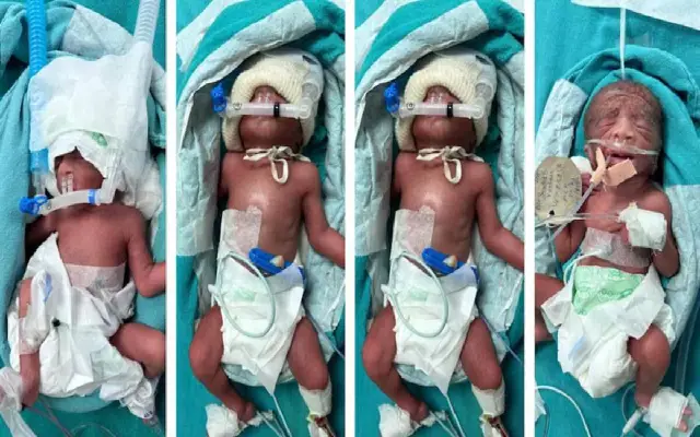 ರಾಜಸ್ಥಾನದ ದೌಸಾ ಜಿಲ್ಲೆಯ ನಿವಾಸಿಯಾಗಿರುವ ಮಹಿಳೆ ಎರಡು ಹೆಣ್ಣು ಮತ್ತು ಎರಡು ಗಂಡು ಮಕ್ಕಳಿಗೆ ಜನ್ಮ ನೀಡಿದ್ದು, ಕಡಿಮೆ ತೂಕ ಮತ್ತು ಕೆಲ ಆರೋಗ್ಯ ಸಮಸ್ಯೆಯಿಂದ ಬಳಲುತ್ತಿರುವ ಕಾರಣ ನಾಲ್ಕೂ ಮಕ್ಕಳನ್ನು ಐಸಿಯುನಲ್ಲಿರಿಸಿ ಚಿಕಿತ್ಸೆ ಕೊಡಿಸಲಾಗುತ್ತಿದೆ. ಇನ್ನೂ ತಾಯಿಯ ಸ್ಥಿತಿ ಕೂಡ ಅಸ್ತವ್ಯಸ್ಥಗೊಂಡಿದ್ದು ಆಕೆಗೂ ಚಿಕಿತ್ಸೆ ನೀಡಲಾಗುತ್ತಿದೆ. ಈ ಬಗ್ಗೆ ಮಾಹಿತಿ ನೀಡಿರುವ ಡಾಕ್ಟರ್ ಆಶಾ ಅವರು ನಮ್ಮ ಆಸ್ಪತ್ರೆಯಲ್ಲಿ ಇದೇ ಮೊದಲ ಬಾರಿಗೆ ಮಹಿಳೆಯೊಬ್ಬರು ನಾಲ್ಕು ಮಕ್ಕಳಿಗೆ ಜನ್ಮ ನೀಡಿರೋದು. ಈ ಹಿಂದೆ ಮಹಿಳೆಯೊಬ್ಬರು ಮೂರು ಮಕ್ಕಳಿಗೆ ಜನ್ಮ ನೀಡಿದ ದಾಖಲೆ ಇತ್ತು. ನಾಲ್ವರು ಮಕ್ಕಳನ್ನು ಸೂಕ್ಷ್ಮವಾಗಿ ನೋಡಿಕೊಳ್ಳಲಾಗುತ್ತಿದೆ. ಅವಧಿ ಪೂರ್ವವೇ ಮಹಿಳೆ ಮಕ್ಕಳಿಗೆ ಜನ್ಮ ನೀಡಿದ್ದಾರೆ. ಸೋಮವಾರ ನಮ್ಮ ಆಸ್ಪತ್ರೆಗೆ ದಾಖಲಾಗಿದ್ದ ಮಹಿಳೆ ಉಸಿರಾಟದ ಸಮಸ್ಯೆಯಿಂದ ಬಳಲುತ್ತಿದ್ದರು. ಹಾಗಾಗಿ ಆಕೆಯನ್ನು ಸಹ ತೀವ್ರಾ ನಿಗಾ ಘಟಕದಲ್ಲಿರಿಸಿ ಚಿಕಿತ್ಸೆ ನೀಡಲಾಗುತ್ತಿತ್ತು. ಒಂದು ಮಗುವಿನ ತೂಕ 900 ಗ್ರಾಂಗಿಂತಲೂ ಕಡಿಮೆ ಇದೆ. ಎರಡು ಮಕ್ಕಳ ತೂಕ ಒಂದು ಕೆಜಿ ಇದ್ದು, ಮತ್ತೊಂದು ಕೇವಲ 700ಗ್ರಾಂ ತೂಕ ಹೊಂದಿದೆ. ಸಾಮಾನ್ಯವಾಗಿ ಆರೋಗ್ಯಕರ ನವಜಾತ ಶಿಶು 2.5 ರಿಂದ 3 ಕೆಜಿ ಹೊಂದಿರುತ್ತೆ ಎಂದು ಹೇಳಿದ್ದಾರೆ.