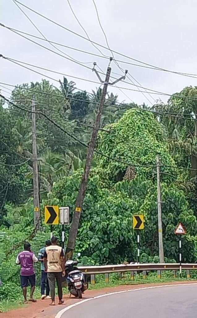 ಜೋಡುಕಲ್ಲು ರಸ್ತೆ ಬದಿಯಲ್ಲಿ ವಾಲಿಕೊಂಡು ಯಾವುದೇ ಕ್ಷಣದಲ್ಲಿ ಕುಸಿದು ಬೀಳಲು ಸಿದ್ದಕೊಂಡ ವಿದ್ಯುತ್ ಕಂಬ: ಸ್ಥಳೀಯರಲ್ಲಿ ಭೀತಿ ಸೃಷ್ಟಿ