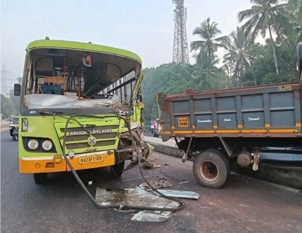 ಕಾರ್ಕಳ: ರಾಜ್ಯದಲ್ಲಿ ಇಂದು ಬೆಳ್ಳಂಬೆಳಗ್ಗೆ ಮತ್ತೊಂದು ಅಪಘಾತ ಸಂಭವಿಸಿದೆ. ಬೆಳಗಾವಿಯಿಂದ ಧರ್ಮಸ್ಥಳಕ್ಕೆ ಹೋಗುತ್ತಿದ್ದ ಸರ್ಕಾರಿ ಬಸ್ ಕಾರ್ಕಳದ ಸಾಣೂರು ರಾಮ ಮಂದಿರದ ಬಳಿ ರಸ್ತೆ ಬದಿ ನಿಲ್ಲಿಸಿದ್ದ ಟಿಪ್ಪರ್ಗೆ ಡಿಕ್ಕಿ ಹೊಡೆದಿದೆ.