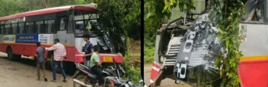 ಹಾಸನ : ಚನ್ನಾಪುರ – ಮಗ್ಗೆ ಸಂಪರ್ಕಿಸುವ KSRTC ಬಸ್ ಒಂದು ಬಾಳಿಗಿನಹಳ್ಳಿ ಬಳಿ ಬಸ್ ಸ್ಟಿಯರಿಂಗ್ ಲಾಕ್ ಆದ ಕಾರಣ ರಸ್ತೆ ಪಕ್ಕದಲ್ಲಿ ಇರುವ ಮರ ಒಂದಕ್ಕೆ ಗುದ್ದಿದ ಪರಿಣಾಮ ಬಸ್ ನುಜ್ಜುಗುಜ್ಜಾಗಿದೆ. ಬಸ್ ನಲ್ಲಿದ್ದ ಸಂಚರಿಸುತ್ತಿದ್ದ ಪ್ರಯಾಣಿಕರು ಪ್ರಾಣಾಪಾಯದಿಂದ ಪಾರಾಗಿದ್ದಾರೆ.