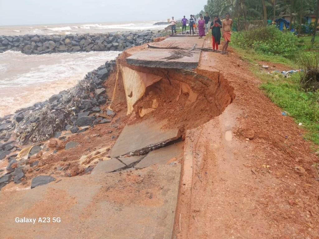 ಹನುಮಾನ್‌ನಗರದಲ್ಲಿ ಕಾಂಕ್ರೀಟ್ ರಸ್ತೆ ಸಮುದ್ರ ಪಾಲು: ಮೊಟಕುಗೊಂಡ ಸಂಚಾರ ಹಲವಾರು ಮನೆಗಳು ಅಪಾಯದಂಚಿನಲ್ಲಿ
