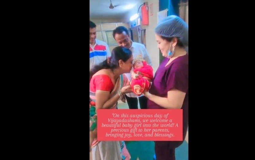 ಹೆಣ್ಣು ಮಕ್ಕಳನ್ನು ದೇವಿಯ ರೂಪವೆಂದು ಪರಿಗಣಿಸಲಾಗುತ್ತದೆ. ಹಾಗೇ ಇಲ್ಲೊಂದು ಕುಟುಂಬದಲ್ಲಿ ವಿಜಯ ದಶಮಿಯ ಪವಿತ್ರ ದಿನದಂದು ಹೆಣ್ಣು ಮಗುವಿನ ಜನನವಾಗಿದ್ದು, ಈ ವಿಶೇಷ ದಿನದಂದು ಹುಟ್ಟಿದ ಈ ಮಗುವಿಗೆ ಆಸ್ಪತ್ರೆಯ ವೈದ್ಯೆಯೊಬ್ಬರು ದುರ್ಗಾ ದೇವಿಯಂತೆ ಬಟ್ಟೆ ತೊಡಿಸಿ, ನಂತರ ಮಗುವನ್ನು ಕುಟುಂಬಸ್ಥರ ಕೈಗೆ ಕೊಟ್ಟಿದ್ದಾರೆ. ಈ ಹೃದಯಸ್ಪರ್ಶಿ ದೃಶ್ಯ ಎಲ್ಲೆಡೆ ವೈರಲ್ ಆಗುತ್ತಿದೆ.