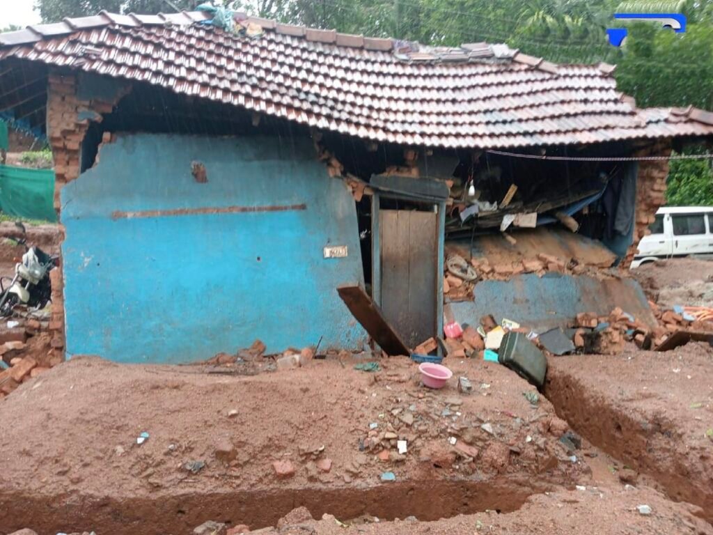 ಬಾರಿ ಗಾಳಿ ಮಳೆಯಿಂದಾಗಿ  ಮನೆ ಕುಸಿತ.