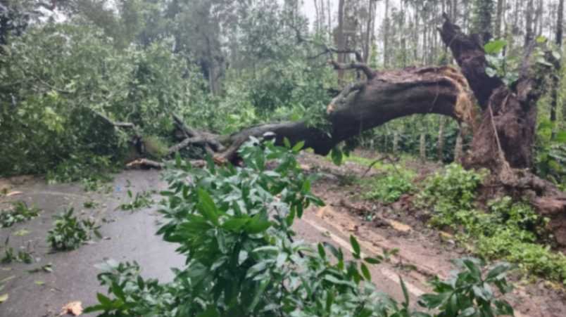 ಬೆಂಗಳೂರು, ಜುಲೈ 25: ದಕ್ಷಿಣ ಕನ್ನಡ ಸೇರಿದಂತೆ ಕರಾವಳಿ ಜಿಲ್ಲೆಗಳಲ್ಲಿ ಅಬ್ಬರಿಸುತ್ತಿರುವ ಮುಂಗಾರು ಮಳೆ ಅನೇಕ ಅವಾಂತರಗಳನ್ನು ಸೃಷ್ಟಿಸಿದೆ. ಮಲೆನಾಡಿನ ಭಾಗದಲ್ಲೂ ಭಾರೀ ಮಳೆ ಆಗುತ್ತಿದ್ದು, ನೂರಾರು ಮರಗಳು ಧರೆಗುರುಳಿವೆ. ಚಿಕ್ಕಮಗಳೂರು ಹಾಗೂ ಮಂಗಳೂರು ಸಂಪರ್ಕಿಸುವ ರಾಷ್ಟ್ರೀಯ ಹೆದ್ದಾರಿಯಲ್ಲಿ ಬೃಹತ್ ಮರಗಳು ಬಿದ್ದು ಅವಾಂತರವೇ ಆಗಿದೆ. NH-73 ಸಂಚಾರ ಸಂಪೂರ್ಣ ಬಂದ್ ಆಗಿದೆ. ಇದಿಷ್ಟೇ ಅಲ್ಲ, ಮರ ಬಿದ್ದಿದ್ದರಿಂದ ವಿದ್ಯುತ್ ಸಂಪರ್ಕವೂ ಕಡಿತಗೊಂಡಿದೆ.