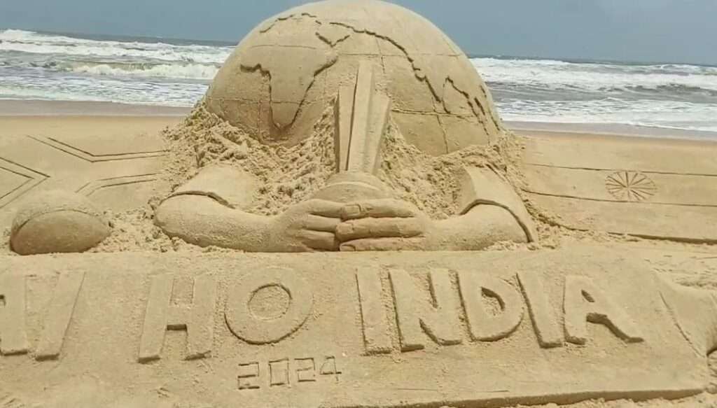 ಭಾರತ ತಂಡಕ್ಕೆ ಶುಭಕೋರುವ ಸಲುವಾಗಿ ‘ಸ್ಯಾಂಡ್ ಥೀಮ್ ತಂಡದಿಂದ ಕಲಾಕೃತಿ ರಚನೆ