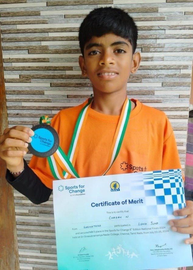 ಎಚ್.ಸಿ.ಎಲ್ ಸಂಸ್ಥೆಯ ವತಿಯಿಂದ ಜುಲೈ 23ರಂದು ತಮಿಳುನಾಡಿನ ಶ್ರೀ ಸುಬ್ರಹ್ಮಣ್ಯ ನಡಾರ್ ಕಾಲೇಜ್ ಆಫ್ ಇಂಜಿನಿಯರಿಂಗ್ ಇಲ್ಲಿ ನಡೆದ ರಾಷ್ಟ್ರ ಮಟ್ಟದ ಕ್ರೀಡಾಕೂಟದಲ್ಲಿ ಲಾಂಗ್ ಜಂಪ್ (ಉದ್ದ ಜಿಗಿತ) ಸ್ಪರ್ಧೆಯಲ್ಲಿ ತೃತೀಯ ಸ್ಥಾನ ಪಡೆದಿದ್ದಾರೆ.