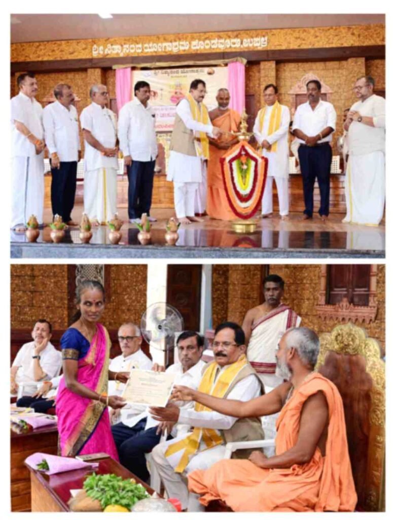 ಉಪ್ಪಳ : ನಿತ್ಯಾನಂದ ಯೋಗಾಶ್ರಮ ಕೊಂಡೆವೂರು ಮಠದಲ್ಲಿ ಸೆ .1ರಂದು ಪೀಠ ಪ್ರತಿಷ್ಠಾ ದಿನ ಮತ್ತು ಪರಮಪೂಜ್ಯ ಯೋಗಾನಂದ ಸರಸ್ವತೀ ಸ್ವಾಮೀಜಿಯವರು ಸಂನ್ಯಾಸಾಶ್ರಮ ಸ್ವೀಕಾರ ಮಾಡಿದ 22 ನೇ ವಾರ್ಷಿಕ ದಿನ ಕಾರ್ಯಕ್ರಮವು ಶ್ರೀ ವಿಷ್ಣು ಸಹಸ್ರನಾಮ  ಹವನ, ಸಾಮೂಹಿಕ ಶ್ರೀ ಸತ್ಯನಾರಾಯಣ ಪೂಜೆಯೊಂದಿಗೆ ಧಾರ್ಮಿಕ ಸಭಾ ಕಾರ್ಯಕ್ರಮವು ನಡೆಯಿತು. ಪರಮಪೂಜ್ಯ ಯೋಗಾನಂದ ಸರಸ್ವತೀ ಸ್ವಾಮೀಜಿಯವರು ಆಶೀರ್ವಚನದಲ್ಲಿ ಕಳೆದ 22 ವರ್ಷಗಳಿಂದ ತಮ್ಮೊಂದಿಗಿದ್ದು ಇಲ್ಲಿನ ಎಲ್ಲಾ ಚಟುವಟಿಕೆಗಳಿಗೆ ಬೆಂಬಲಿಸಿ ಮಠವನ್ನು ಬೆಳೆಸಿದವರೆಲ್ಲರನ್ನು ಶ್ಲಾಘಿಸಿದರು, ದಣಿವರಿಯದೆ ಶ್ರಮಿಸಿದ ಕಾರ್ಯಕರ್ತರ ಕೊಡುಗೆಯನ್ನು ಸ್ಮರಿಸಿಕೊಂಡರು. ಕೊಡುಗೈದಾನಿ ಸದಾಶಿವ ಶೆಟ್ಟಿ ಕುಳೂರು ಕನ್ಯಾನ ಇವರ ಅಧ್ಯಕ್ಷತೆಯಲ್ಲಿ ಕೇಂದ್ರ ಸಚಿವರಾದ  ಯಸ್ಸೋ ನಾಯಕ್ ಮತ್ತು ರಾಜ್ಯಸಭಾ ಸದಸ್ಯ ಕೆ ನಾರಾಯಣ ಸ್ಪಾನ್ ಪ್ರಿಂಟ್  ಬೆಂಗಳೂರು ರವರು ಶ್ರೀ ಮಠದ ಶಿಸ್ತುಬದ್ದ ಧಾರ್ಮಿಕ ಸಾಮಾಜಿಕ ಚಟುವಟಿಕೆಗಳನ್ನು ಹೃತ್ಪೂರ್ವಕವಾಗಿ ಕೊಂಡಾಡಿದರು. ಸಭೆಯಲ್ಲಿ ಕ್ಯಾಂಪ್ಕೊ ಅಧ್ಯಕ್ಷ ಶ್ರೀ ಕಿಶೋರ್ ಕುಮಾರ್ ಕೊಡ್ಗಿ, ಭೂದಾನ ನೀಡಿದ ಶ್ರೀ ಕಿರಣ್ ಕುಮಾರ್ ಭಂಡಾರಿ, ಮಾಜಿ ಎಂ.ಎಲ್.ಸಿ ಶ್ರೀ ಮೋನಪ್ಪ ಭಂಡಾರಿ, ಶ್ರೀ ಶಶಿಧರ ಶೆಟ್ಟಿ ಗ್ರಾಮಚಾವಡಿ, ಮಸ್ಕತ್‌ನ ಶ್ರೀ ವಿಶ್ವನಾಥನ್ ವೆಂಗರೆ, ಮಂಗಳೂರಿನ ಉದ್ಯಮಿ ಶ್ರೀ ಎ.ಜೆ ಶೇಖರ್ ವೇದಿಕೆಯಲ್ಲಿ ಅತಿಥಿಗಳಾಗಿ ಪಾಲ್ಗೊಂಡು ಶುಭವನ್ನು ಹಾರೈಸಿದರು.