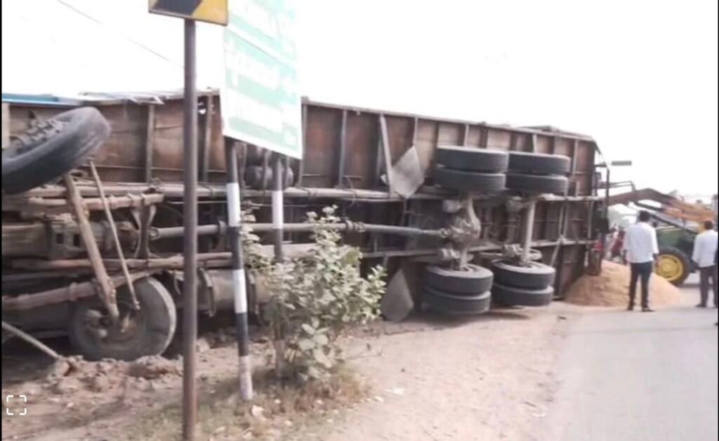 ರಾಯಚೂರು ನಗರದ ಹೊರವಲಯದ ಯರಮರಸ್ ಬೈಪಾಸ್ ಬಳಿ ಭತ್ತದ ಹೊಟ್ಟು ತುಂಬಿದ್ದ ಲಾರಿ ಪಲ್ಟಿಯಾಗಿದೆ.