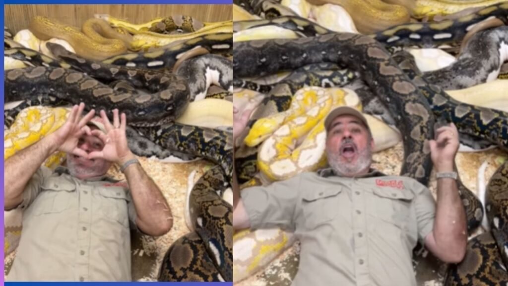 ದಿ ರೆಪ್ಟಿಲ್ ಮೃಗಾಲಯದ ಸಂಸ್ಥಾಪಕ ಹಾಗೂ ಪ್ರಾಣಿ ಪ್ರಿಯ ಆಗಿರುವ ಅಮೇರಿಕಾದ ಜೇ ಬ್ರೂವರ್ (jay brewer) ದೈತ್ಯ ಹೆಬ್ಬಾವುಗಳೊಂದಿಗೆ ತಮ್ಮ ಬರ್ತ್ ಡೇ ಪಾರ್ಟಿಯನ್ನು ಮಾಡಿದ್ದು, ಈ ಕುರಿತ ವಿಡಿಯೋವನ್ನು ಅವರು ತಮ್ಮ ಇನ್ಸ್ಟಾಗ್ರಾಮ್ ಖಾತೆಯಲ್ಲಿ ಹಂಚಿಕೊಂಡಿದ್ದಾರೆ. ವೈರಲ್ ವಿಡಿಯೋದಲ್ಲಿ ಜೇ ಯಾವುದೇ ಭಯವಿಲ್ಲದೆ ದೈತ್ಯ ಹೆಬ್ಬಾವುಗಳ ಜೊತೆ ಹಾಯಾಗಿ ಮಲಗಿರುವ ದೃಶ್ಯವನ್ನು ಕಾಣಬಹುದು. ಮೊದಲೇ ಪ್ರಾಣಿ ಪ್ರಿಯರಾಗಿರು ಜೇ ಈ ವರ್ಷ ಹುಟ್ಟು ಹಬ್ಬವನ್ನು ವಿಶಿಷ್ಟವಾಗಿ ಆಚರಿಸುವ ಎಂದು ದೈತ್ಯ ಹೆಬ್ಬಾವುಗಳ ರಾಶಿಯ ಜೊತೆ ಮಲಗಿ ವಿಶಿಷ್ಟವಾಗಿ ಬರ್ತ್ ಡೇ ಪಾರ್ಟಿ ಮಾಡಿದ್ದಾರೆ.
