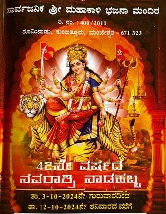 ಕುಂಜತ್ತೂರು: ತೂಮಿನಾಡು ಸಾರ್ವಜನಿಕ ಶ್ರೀ ಮಹಾಕಾಳಿ ಭಜನಾ ಮಂದಿರದಲ್ಲಿ 42ನೇ ವರ್ಷದ ನವರಾತ್ರಿ ನಾಡಹಬ್ಬ ನಾಳೆಯಿಂದ ಆರಂಭ ಗೊಂಡು 12ರ ತನಕ ವಿವಿಧ ಕಾಯಕ್ರಮಗಳೊಂದಿಗೆ ನಡೆಯಲಿದೆ. ಉತ್ಸವ ದಿನದಂದು ಬೆಳಿಗ್ಗೆ ದೀಪಾರಾಧನೆ, ಸಂಜೆ ಭಜನೆ, ರಾತ್ರಿ ಮಹಾಪೂಜೆ, ಪ್ರಸಾದ ವಿತರಣೆ ಹಾಗೂ ವಿಶೇಷ ಸೇವೆಗಳು ನಡೆಯಲಿದೆ. 12ರಂದು ಬೆಳಿಗ್ಗೆ 7.30ಕ್ಕೆ ದೀಪಾರಾಧನೆ, 9.30ರಿಂದ ವಾಹನ ಪೂಜೆ, 11.30ರಿಂದ ಅಕ್ಷರಾಭ್ಯಾಸ, ಮಧ್ಯಾಹ್ನ 12.30ಕ್ಕೆ ಪುಸ್ತಕ ಪೂಜೆ ಮತ್ತು ಮಹಾಪೂಜೆ, ಪ್ರಸಾದ ವಿತರಣೆ, ಮಧ್ಯಾಹ್ನ 1ಗಂಟೆಗೆ ಅನ್ನಸಂತರ್ಪಣೆ ನಡೆಯಲಿದೆ.