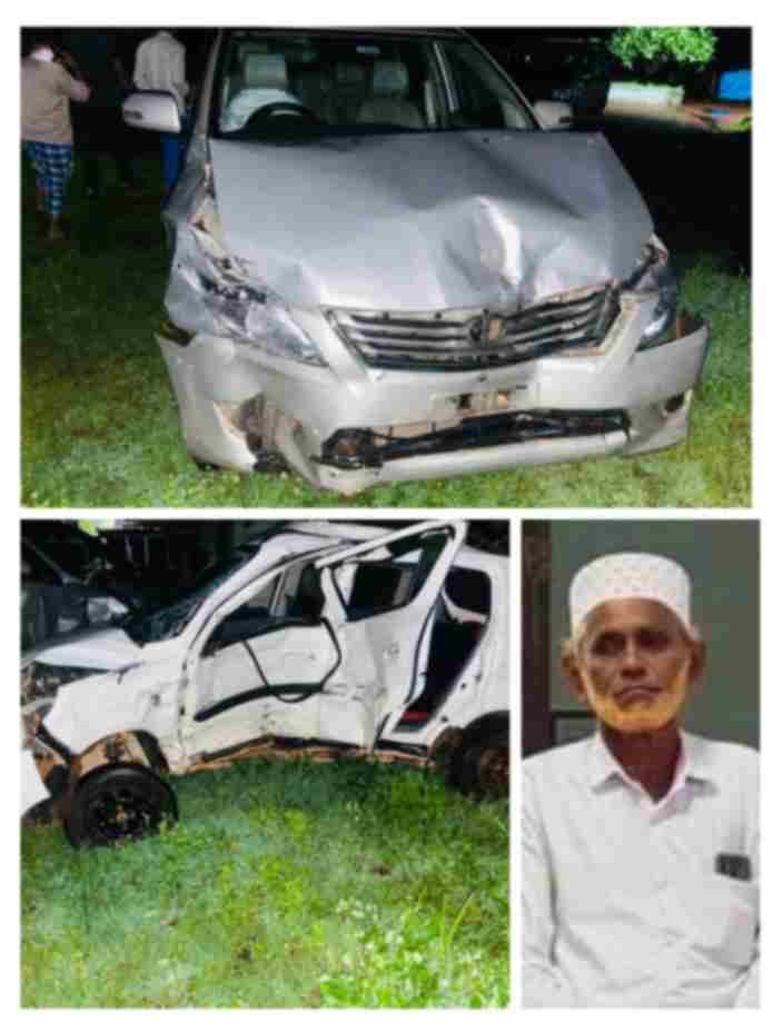 ಮಂಜೇಶ್ವರ: ಎರಡು ಕಾರುಗಳ ಮಧ್ಯೆ ಉಂಟಾದ ಅಪಘಾತದಲ್ಲಿ ಓರ್ವ ಮೃತ ಪಟ್ಟಿದ್ದು ಮೂರು ಮಂದಿ ಗಾಯಗೊಂಡಿದ್ದಾರೆ. 1-7-2024ರಂದು ರಾತ್ರಿ ಮೊರತ್ತಣೆ ಜಂಕ್ಷನ್ ನಲ್ಲಿ ಅಪಘಾತ ಸಂಭವಿಸಿದೆ. ಮಿಂಜ ಪಂಚಾಯತ್ ವ್ಯಾಪ್ತಿಯ ತಲೇಕಳ ಕುದ್ರೆಪ್ಪಾಡಿ ನಿವಾಸಿ ಅಬೂಬಕ್ಕರ್ ಮುಸ್ಲಿಯಾರ್ (65) ಮೃತಪಟ್ಟ ವ್ಯಕ್ತಿ. ರಾತ್ರಿ 11 ಗಂಟೆ ವೇಳೆ ಕುಟುಂಬದೊಂದಿಗೆ ಪಾವೂರು ಎಂಬಲ್ಲಿ ಕಾರ್ಯಕ್ರಮ ಮುಗಿಸಿ ಆಲ್ಟೊ ಕಾರಿನಲ್ಲಿ ಮನೆಗೆ ಮರಳು ತ್ತಿದ್ದಾಗ ಮೊರತ್ತಣೆಯಲ್ಲಿ ಮಜೀರ್ಪಳ ಭಾಗದಿಂದ ಆಗಮಿಸಿದ ಇನೋವಾ ಕಾರು ಡಿಕ್ಕಿಹೊಡೆದು ಅಪಘಾತ ಉಂಟಾಗಿರುವುದಾಗಿ ದೆ ನ್ನಾಲಾಗಿದೆ. ಇದರಿಂದ ಅಬೂಬಕರ್ ಮುಸ್ಲಿಯಾರ್ ಗಂಭೀರ ಗಾಯಗೊಂಡಿದ್ದು ಆಸ್ಪತ್ರೆಗೆ ಸಾಗಿಸುವ ಮಧ್ಯೆ ಮೃತಪಟ್ಟಿದ್ದಾರೆ. ಕಾರು ಚ ಲಾ ಸುತ್ತಿದ್ದ ಇವರ ಪುತ್ರಿ ಹಾಗೂ ಪತ್ನಿ. ಸೊಸೆ ಗಾಯಗೊಂಡು ಮಂಗಳೂರಿನ ಆಸ್ಪತ್ರೆಯಲ್ಲಿ ದಾಖಲಾಗಿದ್ದಾರೆ.
