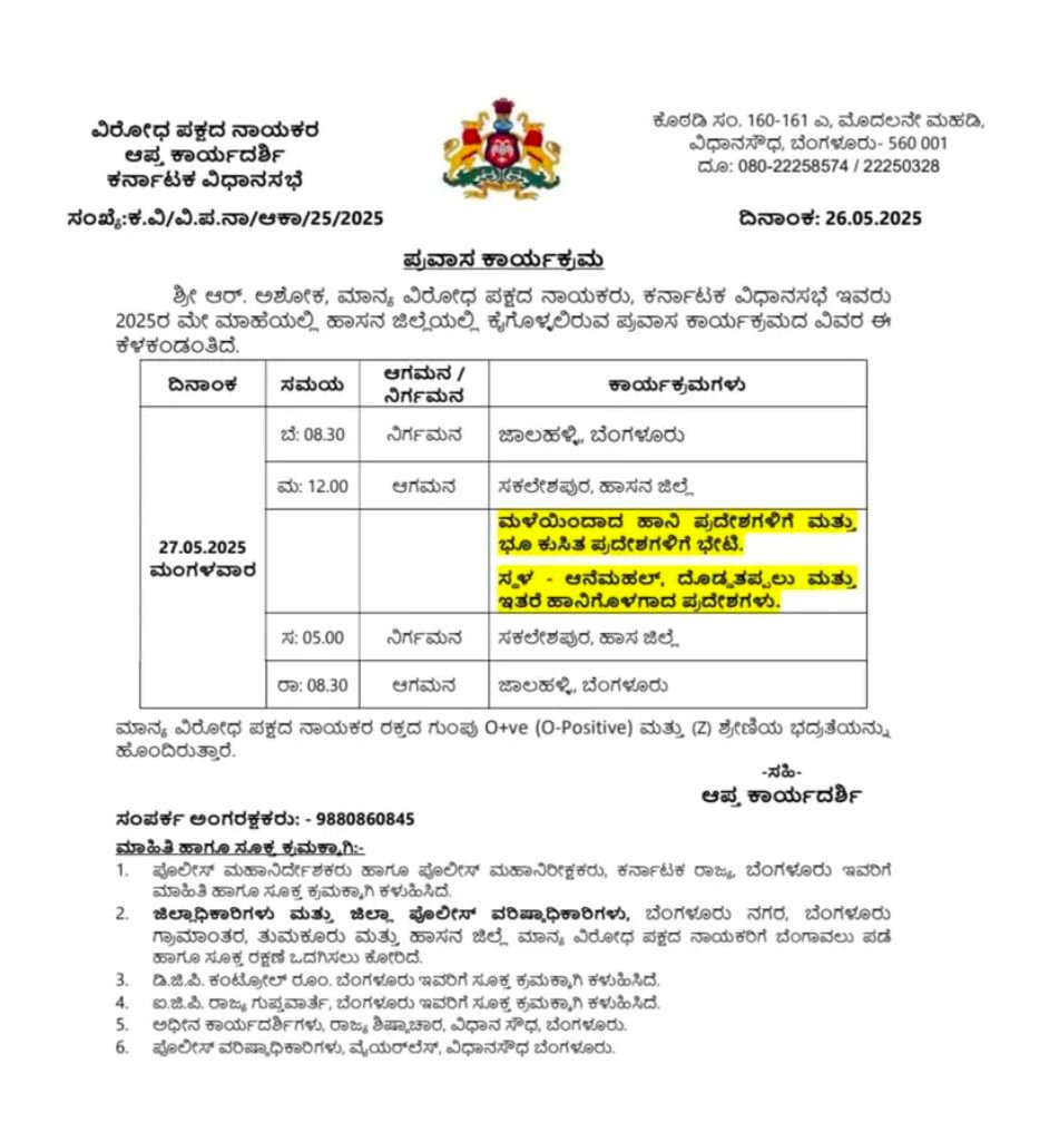 ಸಕಲೇಶಪುರ: ವಿರೋಧ ಪಕ್ಷದ ನಾಯಕರಾದ ಆರ್ ಅಶೋಕ್ ಇಂದು ಸಕಲೇಶಪುರಕ್ಕೆ ಭೇಟಿ ನೀಡಲಿದ್ದಾರೆ.ಶಿರಾಡಿ ಘಾಟ್ ರಸ್ತೆಯ ಹಲವಾರು ಪ್ರದೇಶಗಳಲ್ಲಿ ಆಗುತ್ತಿರುವ ಭೂ ಕುಸಿತಗಳನ್ನು ಅವರು ವೀಕ್ಷಣೆ ಮಾಡಲಿದ್ದಾರೆ.