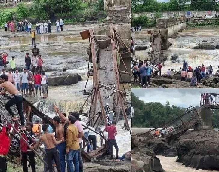 ಮಹಾರಾಷ್ಟ್ರದ ಪುಣೆ ಜಿಲ್ಲೆಯಲ್ಲಿ ಭೀಕರ ದುರಂತ ಸಂಭವಿಸಿದೆ. ಕುಂಡಮಲ ಪ್ರದೇಶದ ಇಂದ್ರಾಯಣಿ ನದಿಗೆ ಅಡ್ಡಲಾಗಿ ನಿರ್ಮಿಸಲಾಗಿದ್ದ ಸೇತುವೆ ಕುಸಿದು ಆರು ಮಂದಿ ಸಾವನ್ನಪ್ಪಿದ್ದಾರೆ.