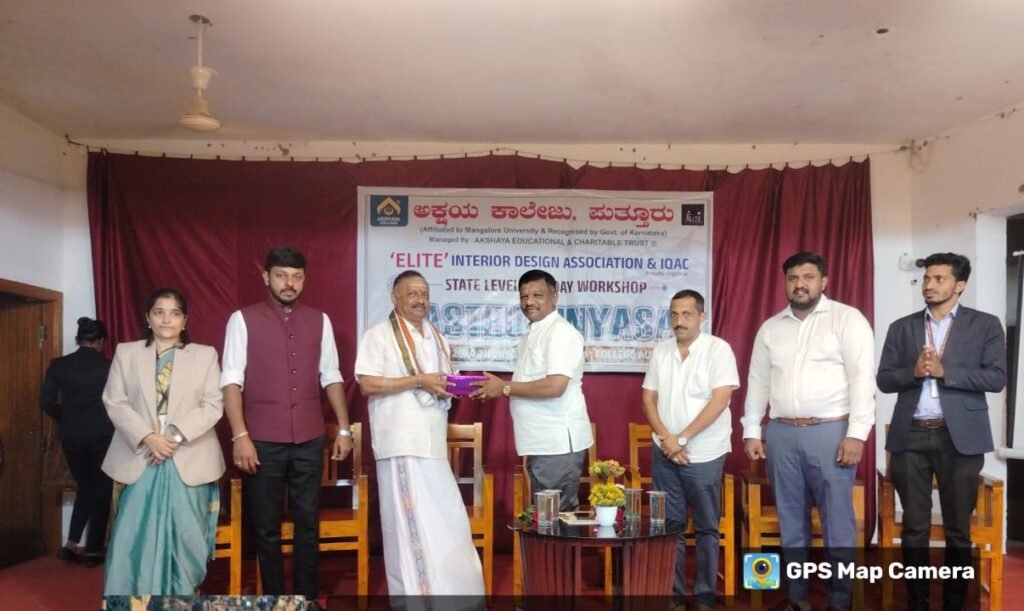 ಅಕ್ಷಯ ಕಾಲೇಜಿನಲ್ಲಿ ಇಂಟೀರಿಯರ್ ಡಿಸೈನ್ ವಿಭಾಗದ ಎಲೈಟ್ ಅಸೋಸಿಯೇಷನ್ ಮತ್ತು ಆಂತರಿಕ ಗುಣಮಟ್ಟದ ಭರವಸೆ ಕೋಶ ಸಹಭಾಗಿತ್ವದಲ್ಲಿ “ವಾಸ್ತು ವಿನ್ಯಾಸ”ದ ಕುರಿತು ರಾಜ್ಯ ಮಟ್ಟದ ಕಾರ್ಯಾಗಾರವನ್ನು ಪುತ್ತೂರು ಸಿವಿಲ್ ಇಂಜಿನಿಯರಿಂಗ್ ಅಸೋಸಿಯೇಷನ್ ಅಧ್ಯಕ್ಷರಾದ ಶ್ರೀ ಸತ್ಯ ಗಣೇಶ್