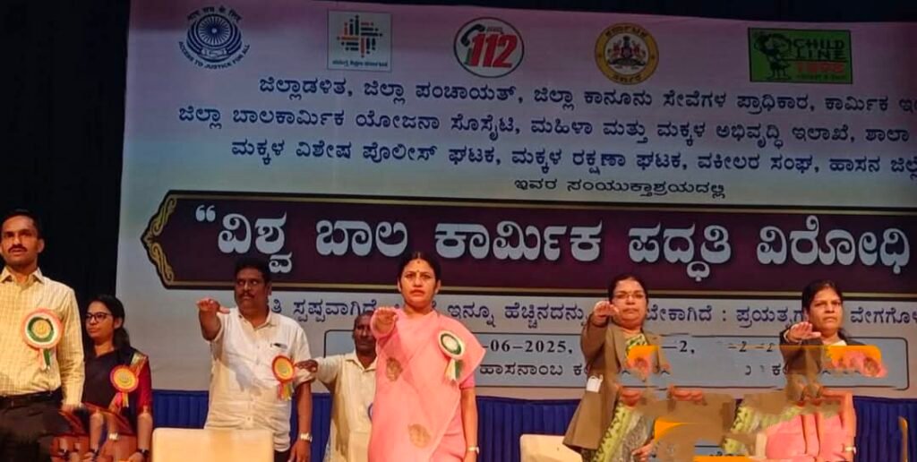 ಹಾಸನ : ಪೋಷಕರು ತಮ್ಮ ಮಕ್ಕಳನ್ನು ಬಾಲಕಾರ್ಮಿಕರಾಗಿ ದುಡಿಮೆಗೆ ಕಳುಹಿಸಬೇಡಿ ಅವರಿಗೆ ವಿದ್ಯಾಭ್ಯಾಸ ಕೊಡಿಸಿ. ಉತ್ತಮ ಪ್ರಜೆಗಳನ್ನಾಗಿ ಮಾಡಿ ಎಂದು ಪ್ರಧಾನ ಜಿಲ್ಲಾ ಮತ್ತು ನ್ಯಾಯಾಧೀಶರು ಹಾಗೂ ಜಿಲ್ಲಾ ಕಾನೂನು ಸೇವೆಗಳ ಪ್ರಾಧಿಕಾರದ ಅಧ್ಯಕ್ಷರಾದ ಹೇಮಾವತಿ ಅವರು ಹೇಳಿದರು.